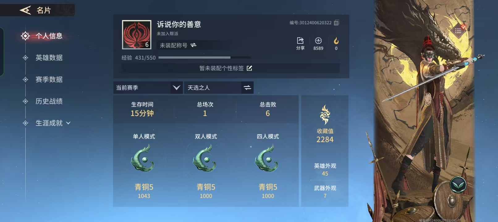 技能等级:青铜