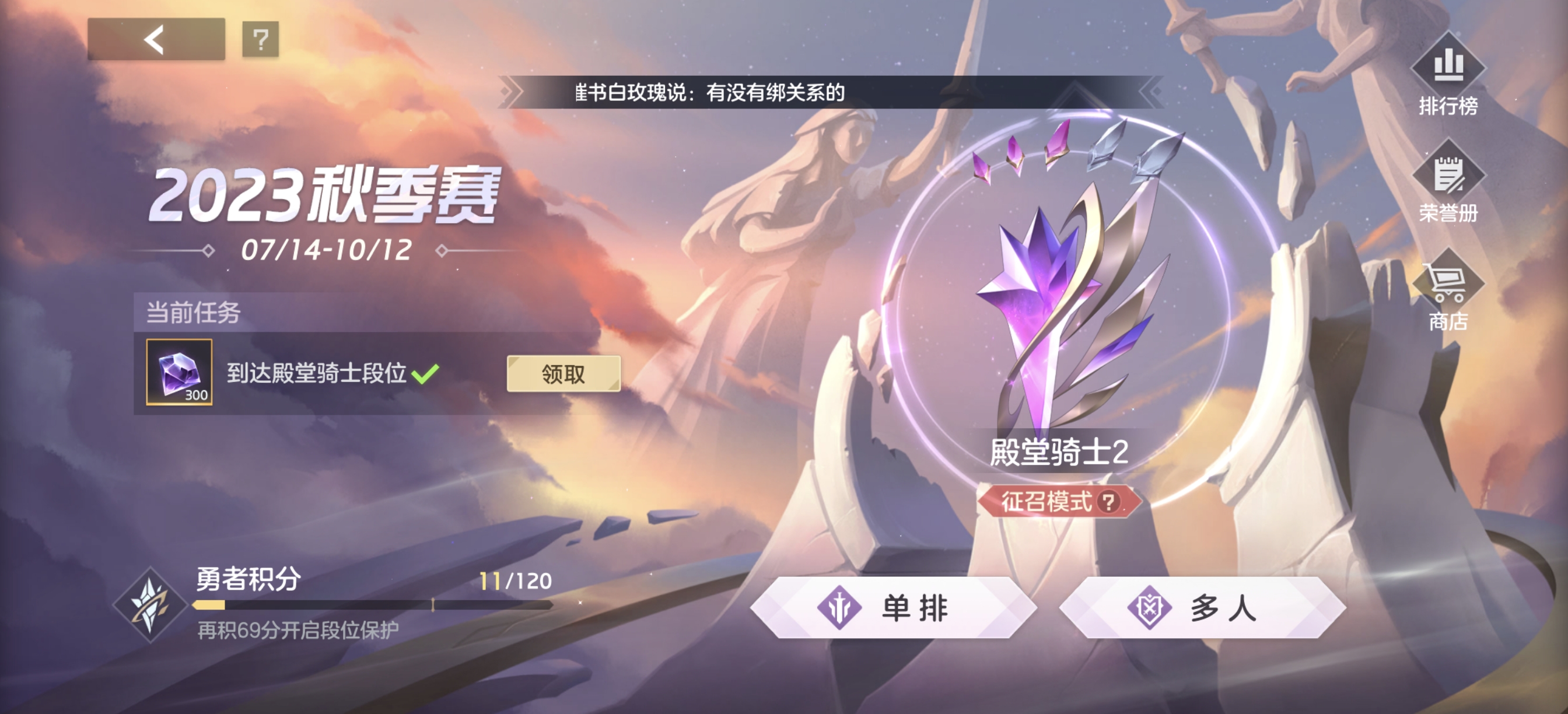 技能等级:红钻(殿堂骑士)