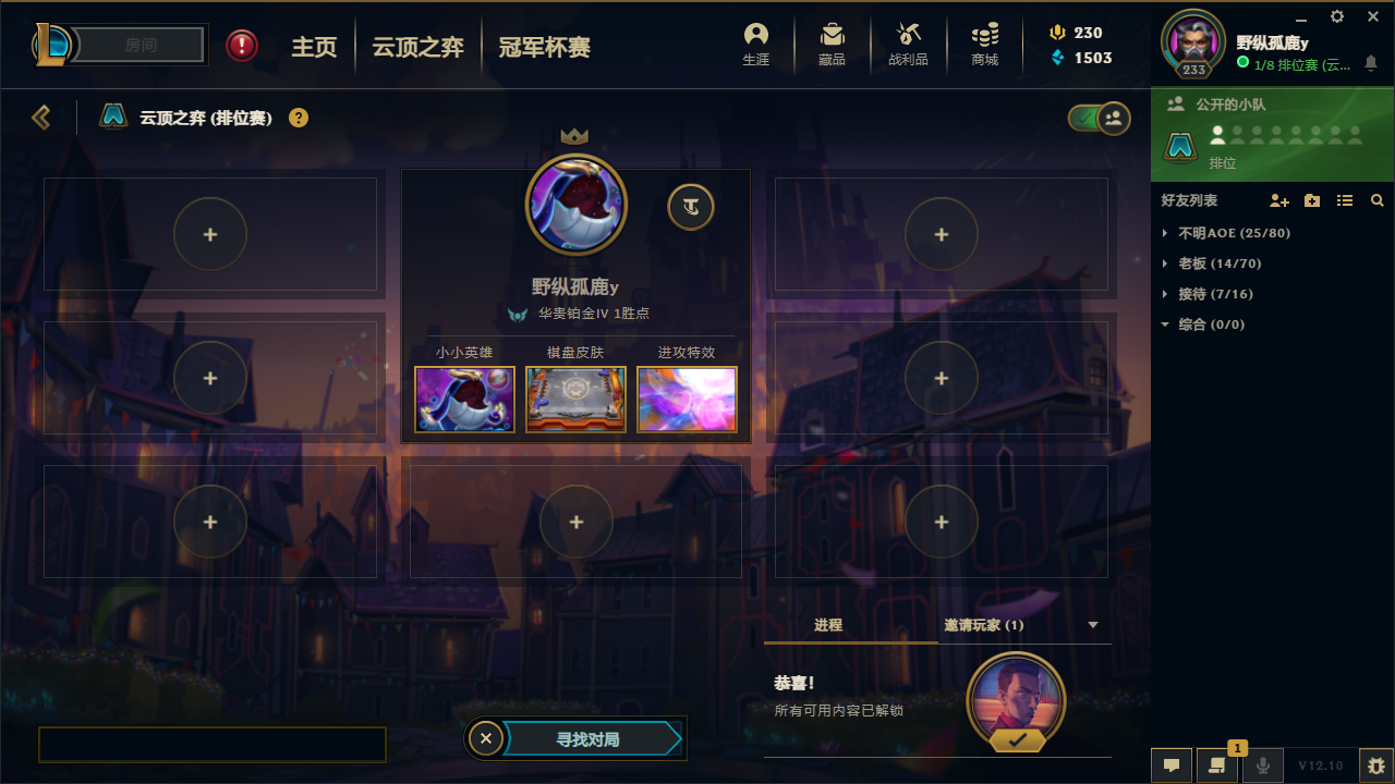 技能等级:铂金