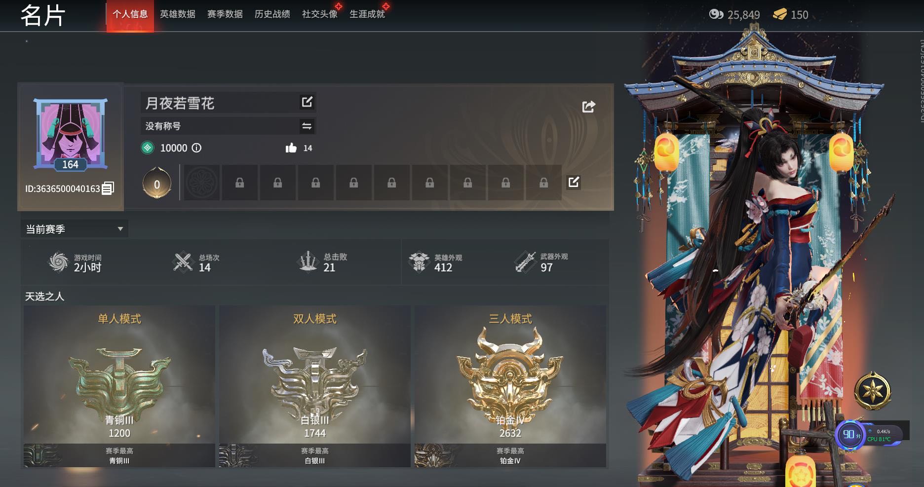 技能等级:铂金