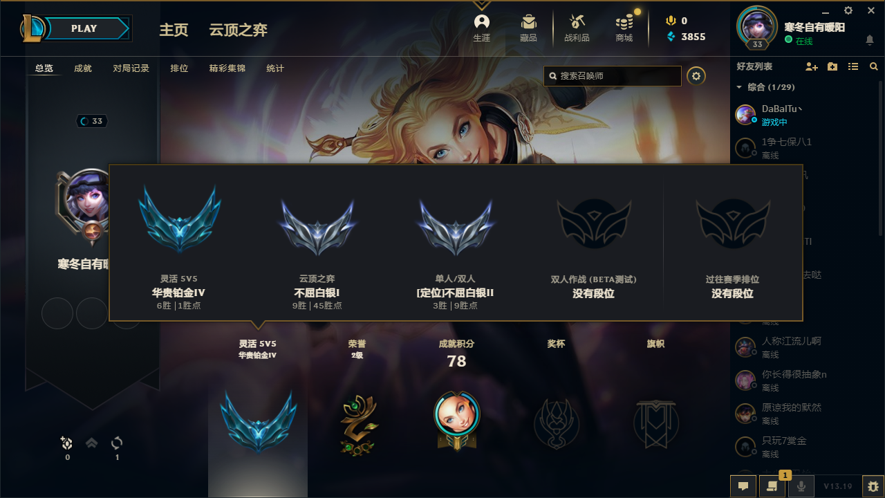 技能等级:华贵铂金