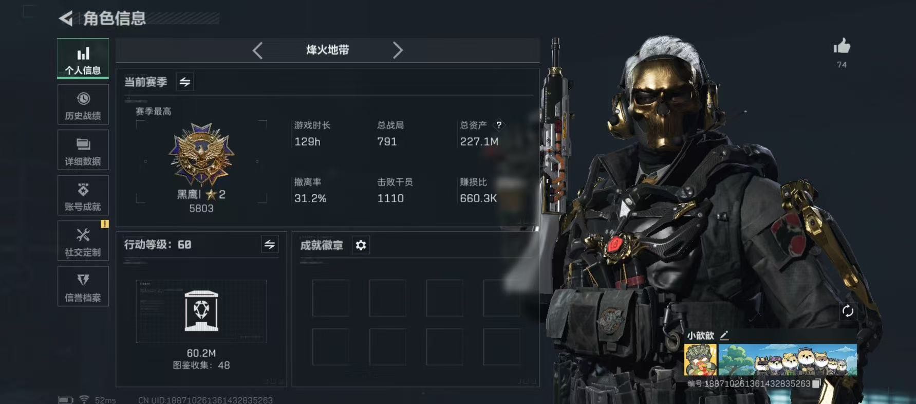哈喽你好,多赛季老玩家,好东西都给你,心态好,技术不错